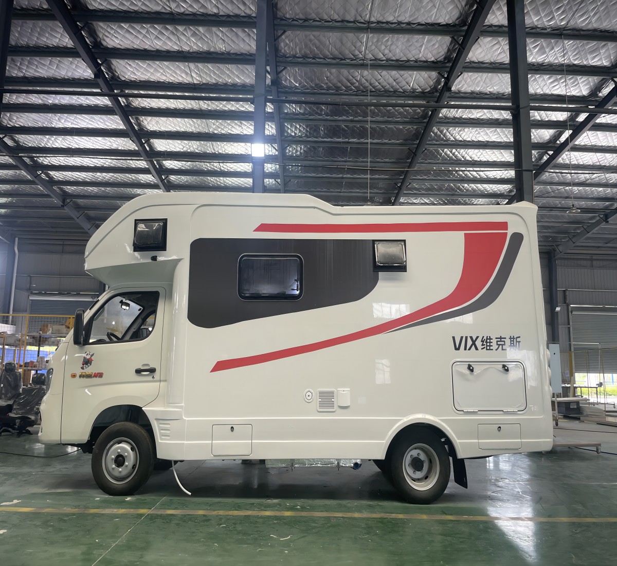 下面介绍的这款款维克斯B型房车,基于福田祥菱M底盘打造,搭载1.5T汽油或柴油涡轮发动机,车辆可上蓝牌,C证可驾驶。 车身尺寸为5750*2200*2780mm,外侧安装遮阳棚,大开侧滑门,黑色玻璃保护隐私。自带上下台阶,顶部内置空调和太阳能电池板。 车尾设计1.9米双人床,在门的右侧有一个隔层式卫生淋浴间,可以解决您旅途中存储食物的问题。驾驶室座椅真皮设计,扶手可调节。配置有倒车影像以及导航,操作简单,体现科技智能化。驾驶室可乘坐三人,驾驶座椅可旋转设计,升降餐桌下降后可与座椅拼成单人床。 驾驶室上方配置了一台微波炉,满足您的加热速食需求。 车门上方配置触摸式车辆集控系统,可以随时了解和控制车辆的水电系统。车内顶部设计了一圈超大氛围灯,对于生活区的视觉效果有明显提升。 厨房位于车厢中部进门处,厨台有嵌入式带盖洗菜池、电磁炉。与厨台相邻,最下方为一台60L门冰箱冷藏冷冻均可。中间为橱物柜,靠近车顶部为微波炉。厨台下面为抽拉式燃气灶,当车门打开时,还可使用外置柴油灶进行户外烹饪。 洗手间空间尚可,淋浴,梳妆镜,毛巾架,折叠式洗手盆、纸抽盒一应俱全。储物箱可放置洗漱用品。顶部的双向换气扇也保持了空气的流通。 位于车厢尾部的休息区是空间超大的双人床设计,床铺尺寸为长1.9米,床铺尺寸宽为1.2米,床头设有三孔插头、USB插口、床头灯,方便您充电。 水电方面配置2000W逆变器、100AHAH铅酸电池,颐尔福车顶太阳能板,50L灰水箱,130L净水箱。